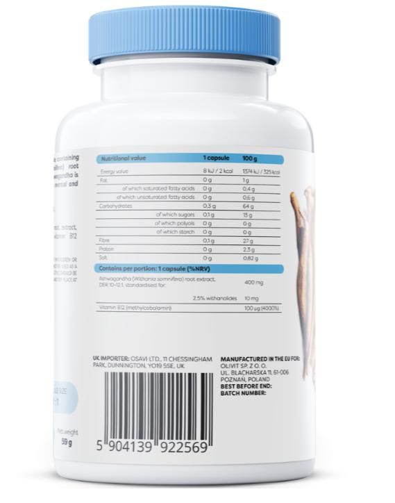 Wenn Sie oft überwältigende Angst und Anspannung verspüren und Stress Sie nicht entspannen lässt, greifen Sie nach Ashwagandha , um Ihre Nerven zu beruhigen. Ashwagandha ermöglicht es Ihnen, ein Gleichgewicht zwischen Entspannung und dem richtigen Energieniveau aufrechtzuerhalten . Dadurch finden Sie Ruhe und Ausgeglichenheit zurück, um sich den Herausforderungen des Alltags zu stellen. Ashwagandha ist eine Pflanze, die seit vielen Jahren im Ayurveda verwendet wird, um zu entspannen, zu beruhigen, die Nerven zu beruhigen und die Vitalität wiederherzustellen. Der Wurzelextrakt macht nicht müde, hilft aber dank seiner beruhigenden Wirkung beim Einschlafen und der Wiedererlangung des inneren Gleichgewichts. Ashwagandha ist adaptogen , was bedeutet, dass es unserem Körper helfen kann, Stress besser zu bewältigen . Es unterstützt unsere Entspannungsfähigkeit, sodass wir uns erholend ausruhen und nach einer erholsamen Nacht erholt aufwachen können. Körperlich aktive Menschen bemerken möglicherweise eine erhöhte Vitalität, was sie dazu ermutigen kann, an einer besseren körperlichen Ausdauer zu arbeiten, um eine bessere sportliche Leistung zu erzielen . Vitamin B12 ist auch für optimale Ruhe und Entspannung verantwortlich. Dieses Vitamin ist hauptsächlich in Lebensmitteln wie Eigelb, Fleisch, Fisch, Meeresfrüchten und Milchprodukten enthalten, weshalb sein geringer Verzehr am häufigsten bei Veganern und Vegetariern beobachtet wird. Ein Vitamin-B12-Mangel kann unter anderem zu Funktionsstörungen des Nerven- und Kreislaufsystems führen, was zu Müdigkeit und Erschöpfung führen kann. Wir haben Ashwagandha mit Vitamin B12 kombiniert, um für Ihr körperliches und geistiges Wohlbefinden zu sorgen . |