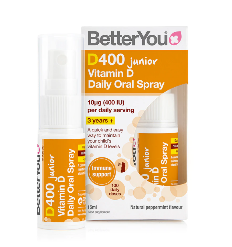 Mit der von der Regierung empfohlenen Dosis von 400 IE (10 μg (Mikrogramm)) pro Sprühstoß liefert D400 Junior die optimale Dosis an Vitamin D, um die Entwicklung eines Kindes zu unterstützen. Jedes Spray ist so formuliert, dass es eine optimale Nährstoffversorgung bietet, und liefert das Vitamin D in mikrogroßen Tröpfchen, die das Weichgewebe der inneren Wange bedecken und durchdringen und die essentiellen Nährstoffe in das reichhaltige Venensystem darunter liefern. Dadurch kann die Formulierung für eine optimale Absorption schnell in den Blutkreislauf gelangen. Die orale Verabreichungsmethode hilft, den Vitamin-D-Spiegel Ihres Kindes auf bequeme und unkomplizierte Weise zu erhöhen – ohne Wasser. Keine Tabletten. Keine Aufregung. Passend für :