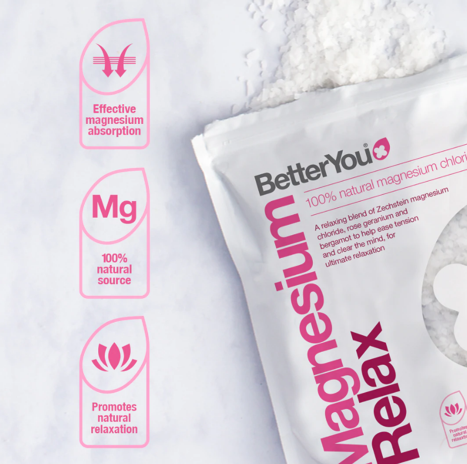 BetterYou Magnesium Relax Flakes enthalten eine hochkonzentrierte Form von 100 % natürlichem Zechstein-Magnesiumchlorid. BetterYou Zechstein Magnesiumchlorid stammt aus einer natürlichen Quelle tief im Inneren der Erdkruste. Es wird seit über 250 Millionen Jahren vor vom Menschen verursachten Schadstoffen geschützt, um seine Qualität und Reinheit zu gewährleisten. BetterYou Magnesium Relax Bath Flakes sind eine effektive Möglichkeit, den Körper mit diesem essentiellen Mineral aufzufüllen, das allgemeine Wohlbefinden zu fördern, die Gesundheit der Haut zu unterstützen und müde und schmerzende Muskeln auf natürliche Weise zu lindern. Magnesium ist ein essentielles Mineral für die Erholung nach körperlicher Anstrengung und trägt zur Verringerung von Müdigkeit und Ermüdung, zur normalen Muskelfunktion und zur Erhaltung gesunder Knochen und Zähne bei. Magnesium trägt auch zum Elektrolytgleichgewicht bei und unterstützt einen normalen Energiestoffwechsel. Es spielt auch eine Rolle bei der normalen psychischen Funktion und dem gesunden Funktionieren des Nervensystems.