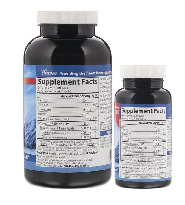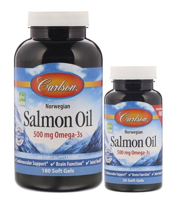 Carlson Labs Norwegisches Lachsöl 500 mg 180 + 50 Gratis-Gelkapseln