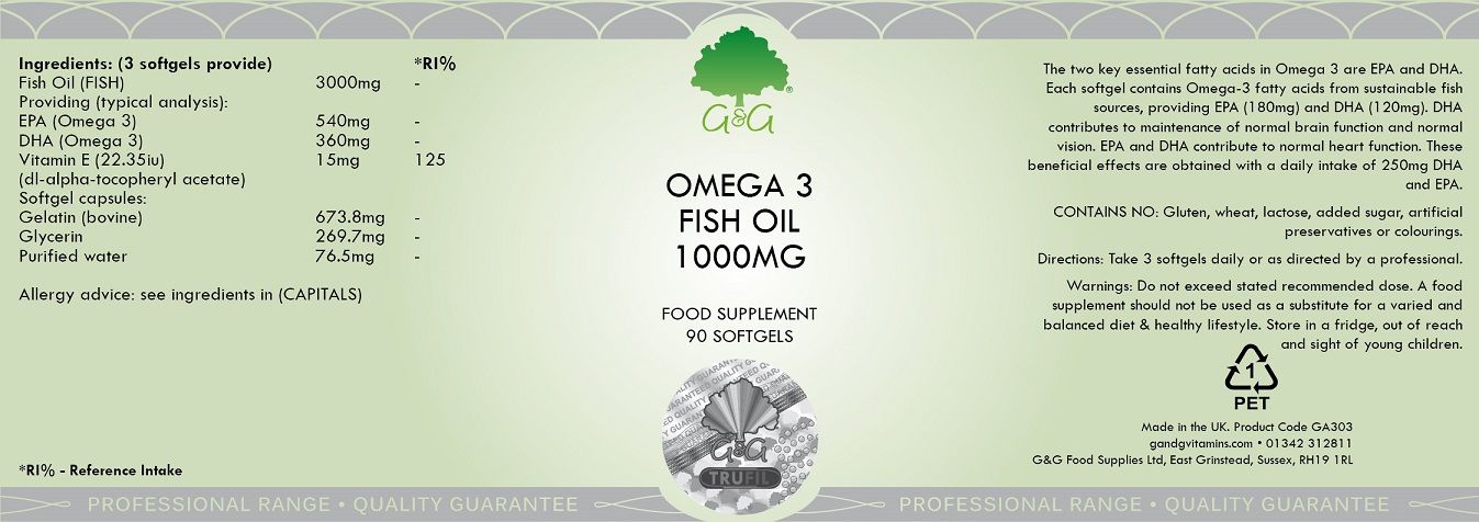 | Beschreibung | G&G VITAMINS' Omega-3-Fischölergänzungsmittel enthält hochwertige Omega-3-Fettsäuren, die nachhaltig aus der Zone 87 der peruanischen Sardellen stammen und von "Friend of the Sea" zugelassen sind. Jedes Softgel enthält 180 mg EPA und 120 mg DHA. Die Fischöle sind frei von Schwermetallen und das Softgel selbst wird aus pflanzlichem Glycerin hergestellt. Es wurde festgestellt, dass Omega 3 die Gehirn-, Seh- und Herzfunktion unterstützt und auch während der Schwangerschaft nützlich ist. |