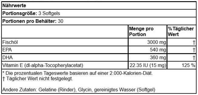 | Fischöl liefert (typische Analyse) - EPA (Omega-3) - DHA (Omega-3) |