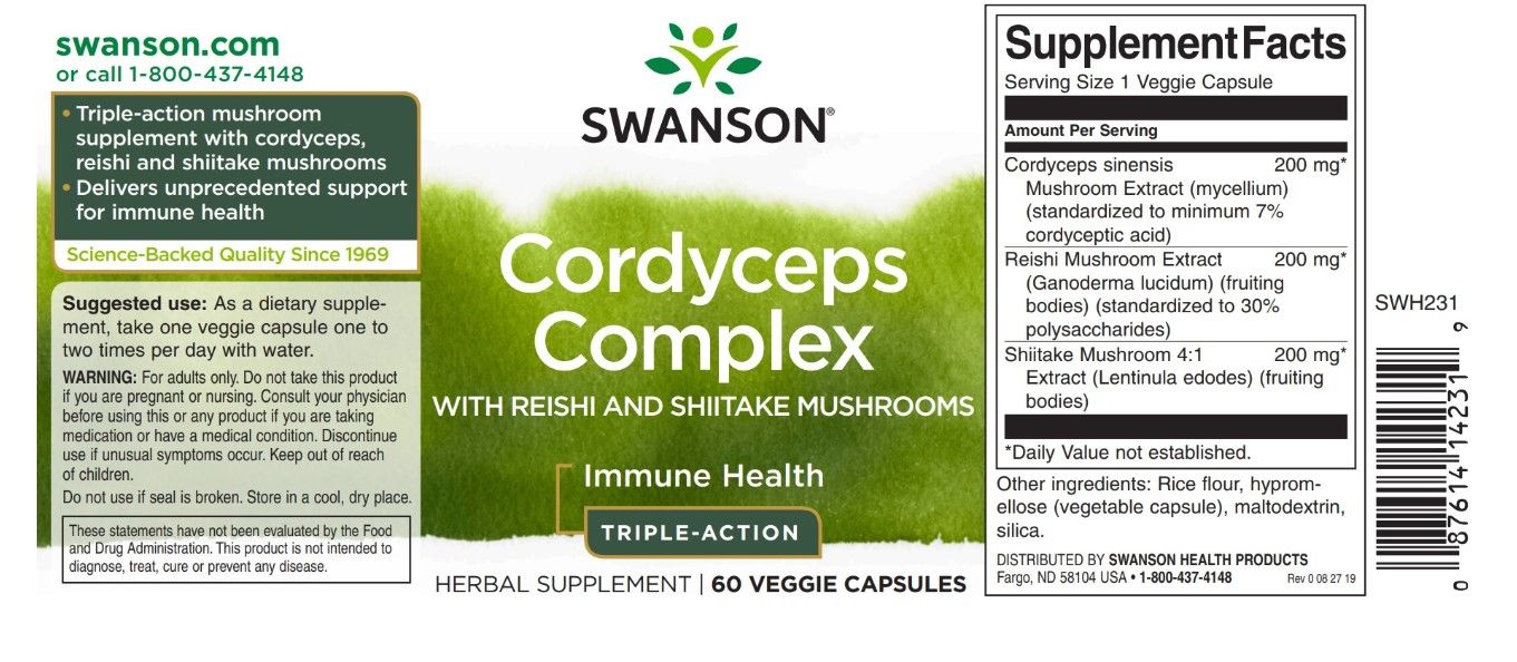 Swanson Cordyceps-Komplex mit Reishi und Shiitake-Pilzen 60 Kapseln