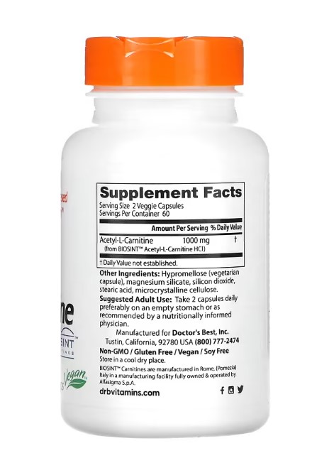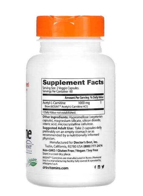 Doctor's Best Acetyl-L-Carnitin mit Biosint Carnitinen, 500 mg, 120 Kaps