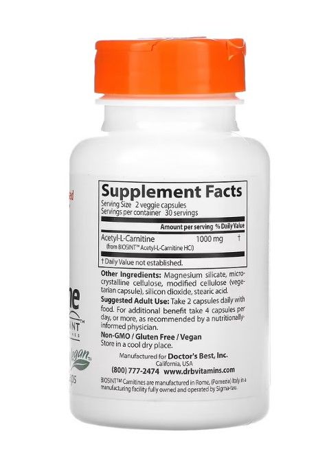 Doctor's Best Acetyl-L-Carnitin mit Biosint Carnitinen, 500 mg, 60 vegge Kaps