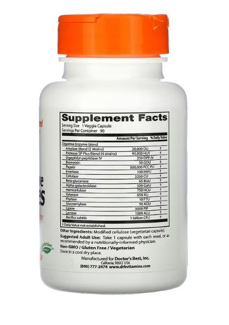Doctor's Best Verdauungsenzyme, 90 vegetarische Kapseln