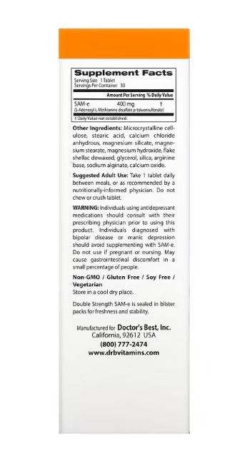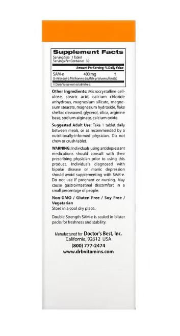 Doctor's Best Double Strength SAM-e (Disulfattosylat), 30 Tabs