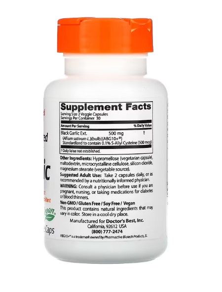 Doctor's Best fermentierter schwarzer Knoblauch ABG10+, 250 mg, 60 vege Kaps