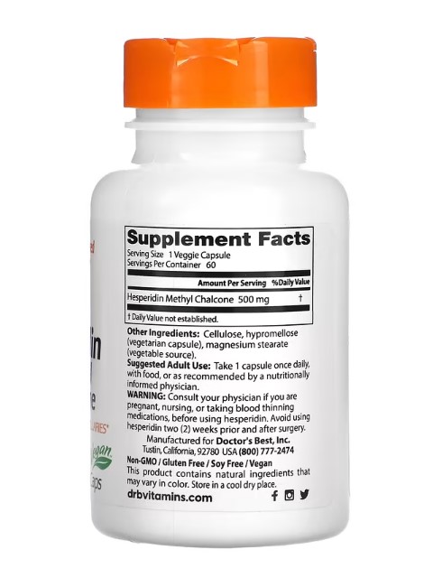 Doctor's Best Hesperidin, Methyl Chalcone, Methylchalkon, 500 mg, 60 vegge Kaps