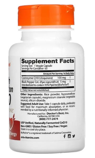 Doctor's Best High Absorption CoQ10 with BioPerine 100 mg 60 Kapseln
