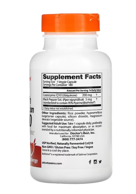 Doctor's Best hoch absorbierbares CoQ10 mit BioPerine, 180 pflanzliche Kaps