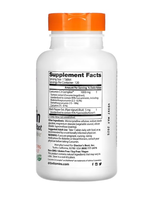 Doctor's Best Kurkumin mit hoher Absorption, 1.000 mg, 120 Tabletten