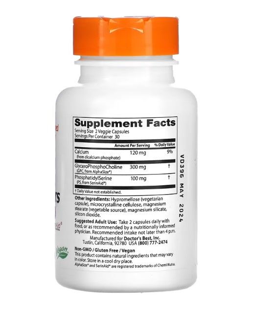 Doctor's Best natürliche Gehirnunterstützung mit AlphaSize und SerinAid, 60 Kaps