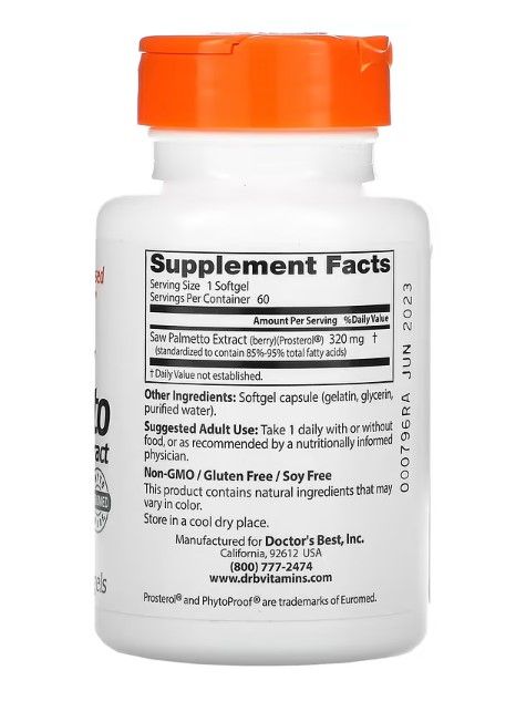 Doctor's Best Saw Palmetto mit Prosterol, standardisiertes Extrakt, 60 kaps
