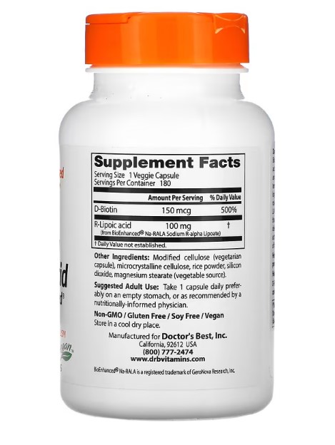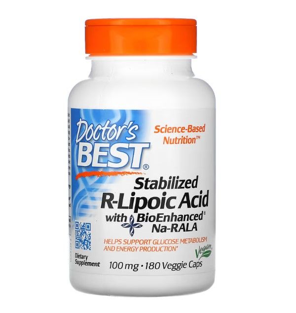Doctor's Best stabilisierte R-Liponsäure BioEnhanced Na-RALA 100mg 180 vege Kaps