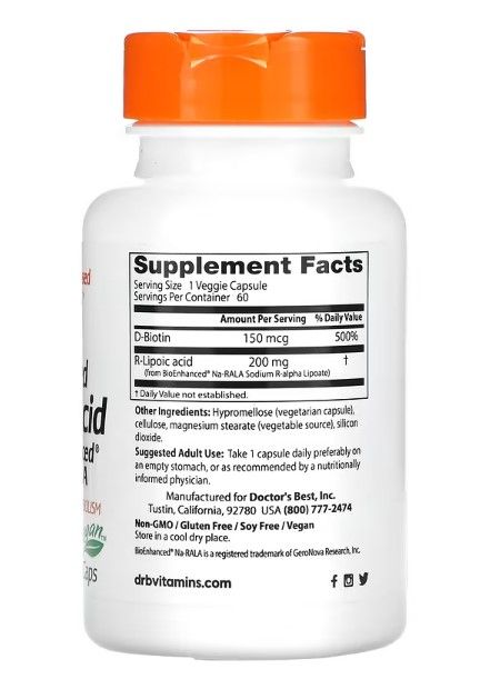 Doctor's Best stabilisierte R-Liponsäure BioEnhanced Na-RALA, 200mg 60 vege Kaps