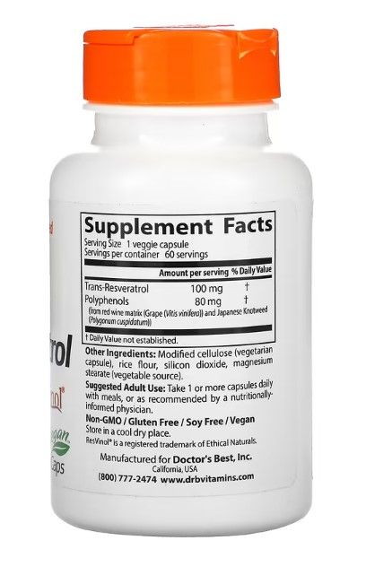 Doctor's Best Trans-Resveratrol mit ResVinol, 100 mg, 60 vegetarische Kapseln