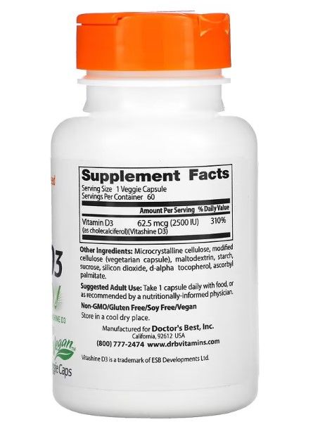 Doctor's Best veganes Vitamin D3 mit Vitashine D3, 2.500 IU, 60 vegge Kaps