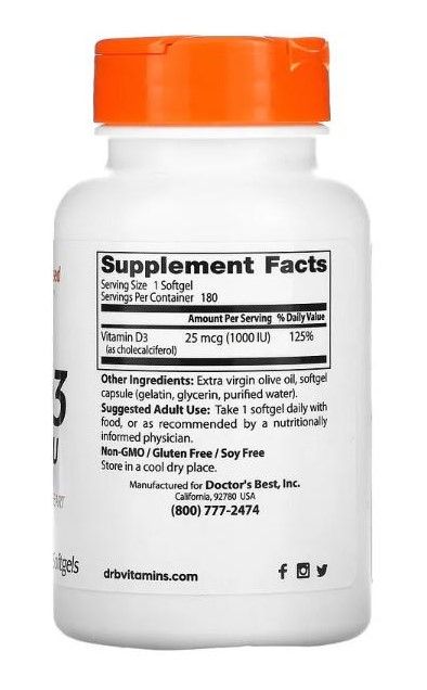 Doctor's Best Vitamin D3, 1.000 IU, 180 Weichkapseln