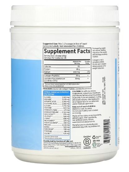 Garden of Life, Grass Fed Collagen Peptides, Unflavored, 560 g