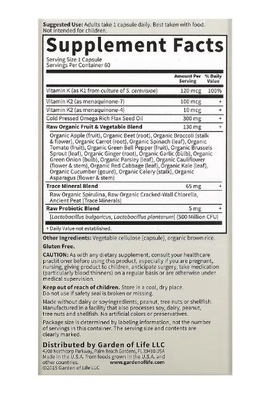 Garden of Life, Vitamin Code, RAW K-Komplex, 60 vegane Kapseln