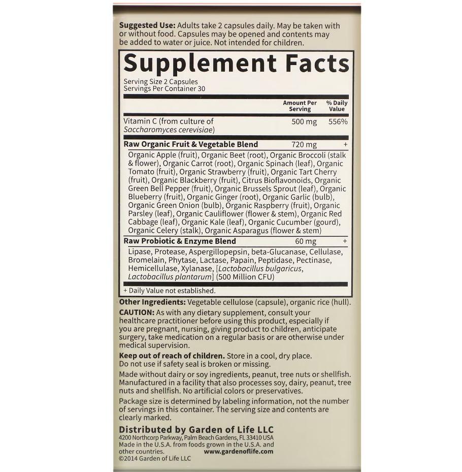 Garden of Life Vitamin Code RAW Vitamin C 60 veg Kaps