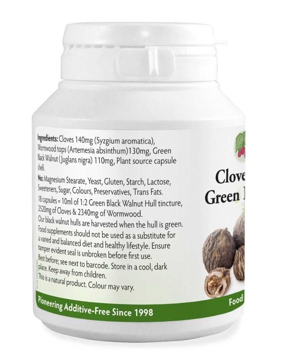 | Beschreibung | Starker Trio zum Unterstützung der Verdauung. Wermutkraut, Gewürznelken und Grün-Schwarzwalnuss werden alle traditionell für verschiedene Verdauungsprobleme verwendet. Health Leads wählt sorgfältig die Nelke Rostoffe aus um sicher zu sein, dass sie nicht bestrahlt sind. Urbevölkerungen verwenden Nelken als ein natürlicher Antioxidant und als ein antiseptisches, lokalbetäubendes und entzündungshemmendes Mittel. Urbevölkerungen verwenden auch Gewürznelke als ein verdauungsstimulierendes Mittel. Grüne Schwarzwallnuss Schale sind von Ürbevölkerungen traditionell als antibakterieller, antiviraler und antipilz Mittel verwendet worden. Wermutkraut wird für verschiedene Verdauungsprobleme wie Appetitlosigkeit, Magenbeschwerden, Gallenblasenerkrankungen und Darmkrämpfe verwendet. Wermut wird auch verwendet um Fieber, Lebererkrankungen und Wurminfektionen zu behandeln. In dieses Produkt werden 100% reine Pulvern verwendet ohne Zusätze und ohne Magnesiumstearat. |