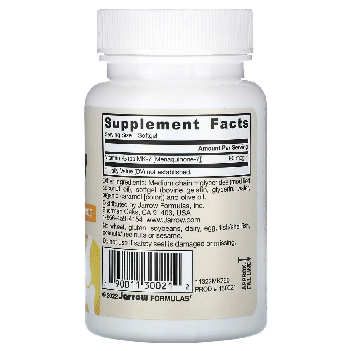 Jarrow Formulas MK-7, Most Active Form of Vitamin K2, 90 mcg, 90 Softgels