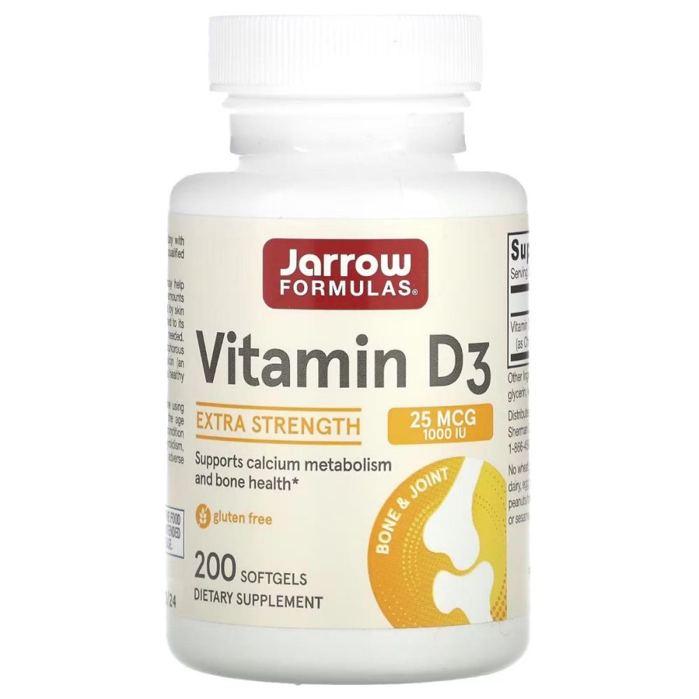 Jarrow Formulas Vitamin D3, Cholecalciferol, 25 mcg (1,000 IU), 200 Softgels