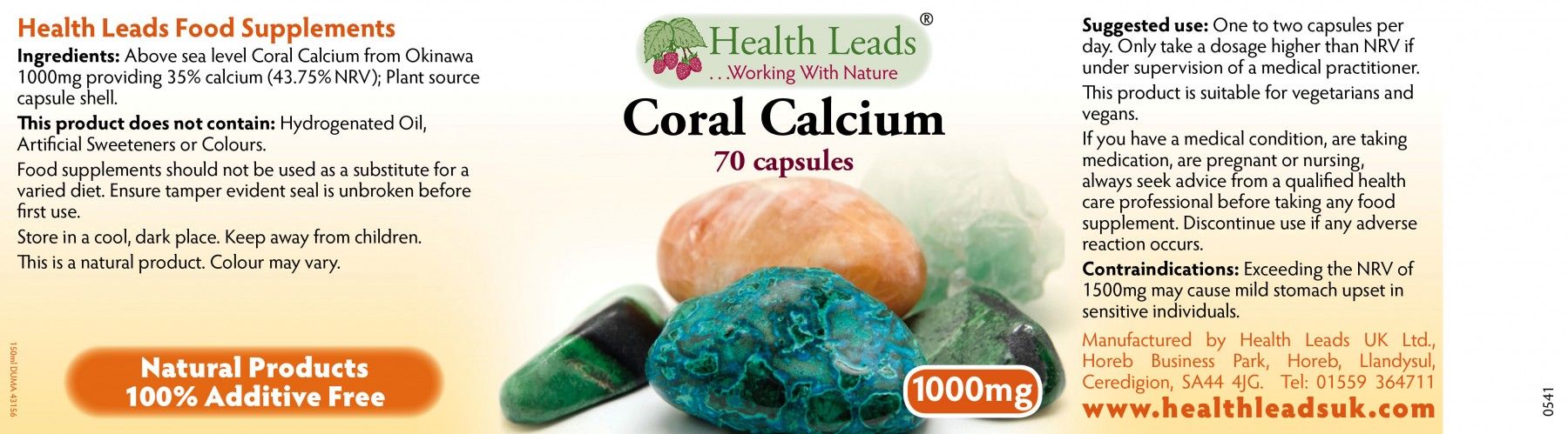 | Inhalt | Health Leads Koralle Kalzium 1000mg x 70 Kapseln: Meer Koralle Kalcium und Kapselhülle pflanzlichen Ursprungs. |