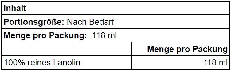 | 100% reines Lanolin | 118 ml |
