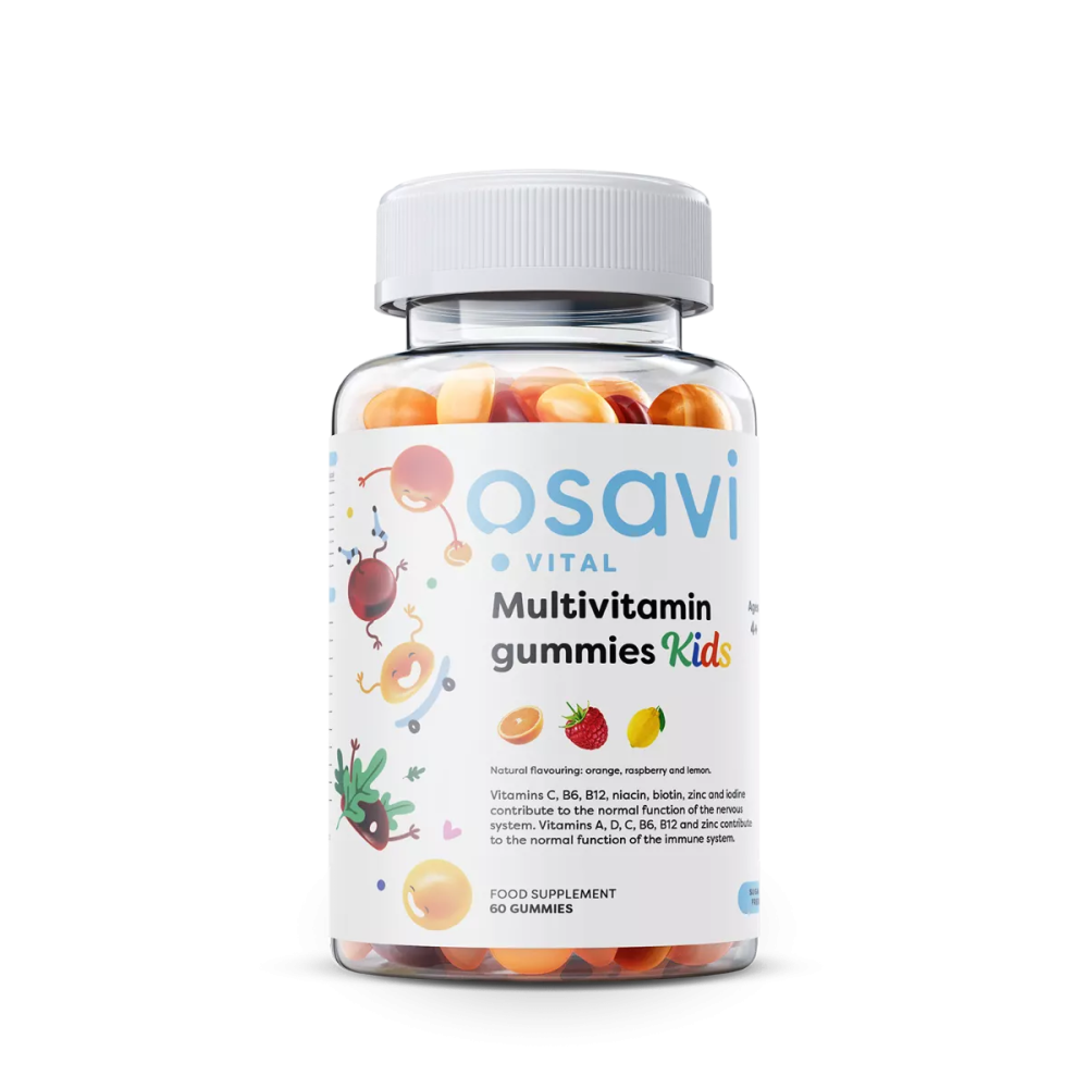 We have a way to provide children with essential nutrients. Tasty, colourful and fun. Gummies full of vitamins and minerals that you can give to your child in an enjoyable way. A healthy diet is the best source of vitamins and minerals for children and adults. The most important way to get sufficient nutrients is to eat a balanced diet to provide all the elements necessary for the proper functioning of the body [1]. However, if the diet is monotonous and based on processed food, the child may refuse to eat many foods of nutritional value, it is worth reaching for a multivitamin that will support optimal health[2,3]. A properly balanced diet is essential for the proper growth and development of the body [4]. The correct way of feeding a child should be based, among others, on: vegetables, fruits, wholegrain products, dairy products, eggs, meat, fish, legumes and essential fatty acids contained in nuts, seeds, olive oil, butter, rapeseed oil or avocado. However, there are some circumstances in which getting the right amount of vitamins and minerals through your diet may be a bit difficult. The use of elimination diets for health reasons, a vegan model of nutrition, food selectivity of a child or food neophobia may be associated with insufficient intake of valuable nutrients [2,3,5]. A food supplement containing appropriate amounts of ingredients necessary for the child's development may prove helpful [6,7]. Vitamins A, D, C, B6, B12 and zinc help in the proper functioning of the immune system, which is important for the development of the child's immunity [8]. Vitamins C, B6, B12, niacin, biotin, zinc and iodine, which affect the proper functioning of the nervous system, allow the child to develop properly, think and be creative [9]. Vitamins A, niacin and biotin help maintain the proper condition of the mucous membranes and skin and support their natural functions. The ingredients in the gummy bears can help maintain the healthy skin of your child, which is an important barrier against harmful external factors [10]. Vitamins C, B6, B12, niacin and iodine contribute to maintaining proper energy metabolism, thanks to which, the child has energy to play, learn and explore the world [11,12]. Our food supplement contains a properly prepared composition of vitamins and minerals adapted to you and your child who is above 4-years-old. This form of gummies is an attractive form of supplementation for every toddler, which allows them to avoid swallowing capsules and tablets, which is problematic for many of us. In the interests of proper eating habits from an early age, we have prepared sugar-free gummies with natural delicious flavours: orange, raspberry and lemon. Bearing in mind the different nutritional needs of children and adults, we have removed the gummies of gluten, lactose, soy and GMOs. The daily dose for a child is 1 jelly, which provides 200 μg (25%) of vitamin A, 5 μg (100%) of vitamin D, 6 mg (50%) of vitamin E, 15 μg (20%) of vitamin K, 30 mg (37 .5%) vitamin C, 8 mg (50%) niacin, 0.7 mg (50%) vitamin B6, 2.5 μg (100%) vitamin B12, 25 μg (50%) biotin, 2.5 mg ( 25%) zinc and 75 μg (50%) iodine. The recommended adult portion is 2 gummies a day. Take care of the proper development, growth, immunity of your child and your own wellbeing with our delicious gummies that promote optimal health. |