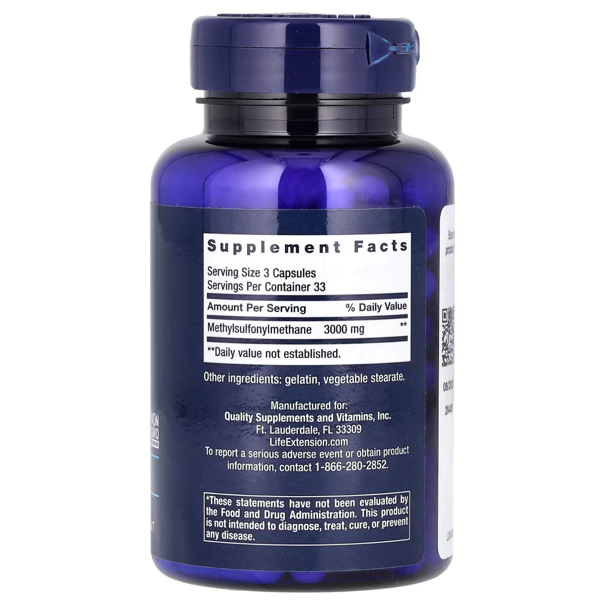 Life Extension, MSM, 3.000 mg, 100 Kapseln (1.000 mg pro Kapsel)