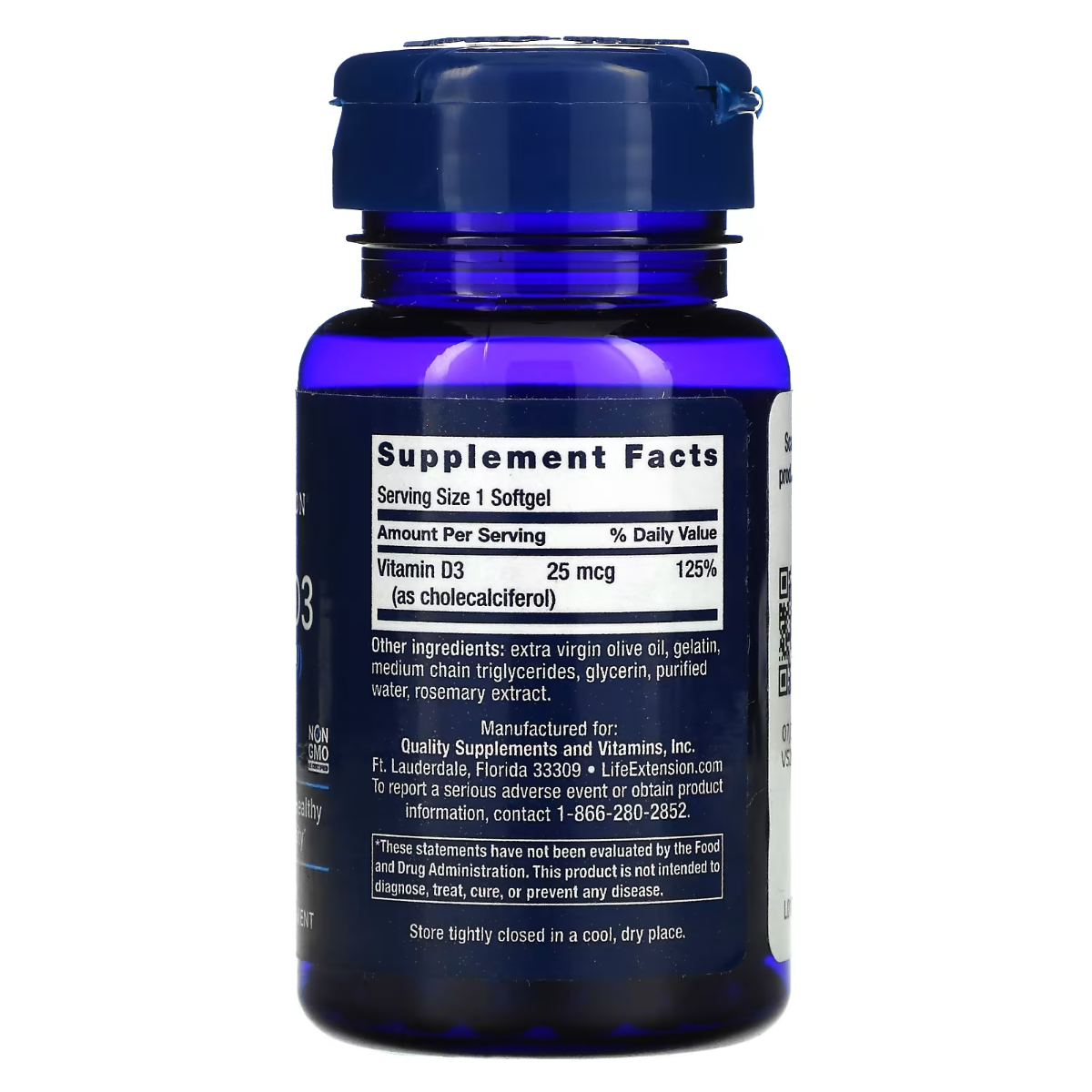 Life Extension, Vitamin D3, 1.000 IU (25 mcg), 90 Weichkapseln