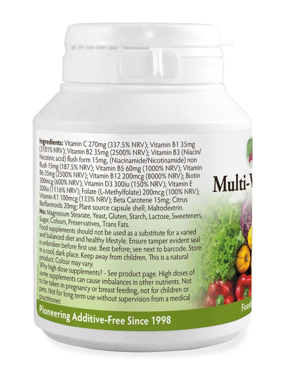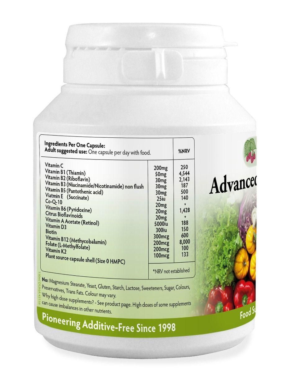 | Warnhinweise | Langzeitaufnahme von 35 mg Vitamin B6 kann zu leichtem Kribbeln und Taubheitsgefühl führen. 20 mg Nikotinsäure kann Hautspülungen bei empfindlichen Personen verursachen. Beta-Carotin sollte nicht von schweren Rauchern genommen werden. Falls Sie an einer Krankheit leiden, Medikamente einnehmen, schwanger sind oder stillen, sollten Sie immer den Rat eines qualifizierten Gesundheitsfachmanns einholen, bevor Sie Nahrungsergänzungsmetteln nehmen. |
