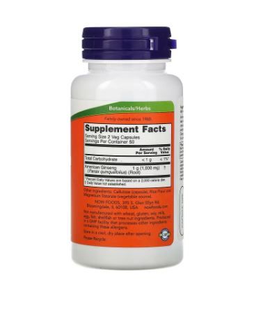 Now Foods American Ginseng, amerikanischer Ginseng, 500 mg, 100 Kapseln
