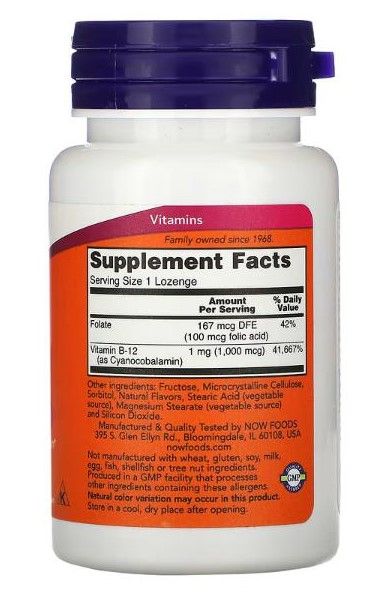 NOW Foods B-12 + Folsäure, 1.000 mcg, 100 Lutschtabletten