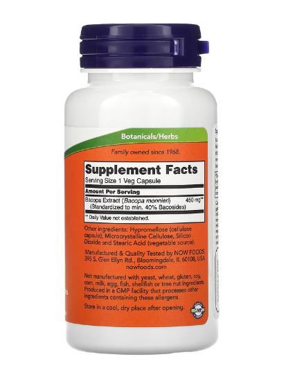 Now Foods Bacopa-Extrakt, 450 mg, 90 pflanzliche Kapseln