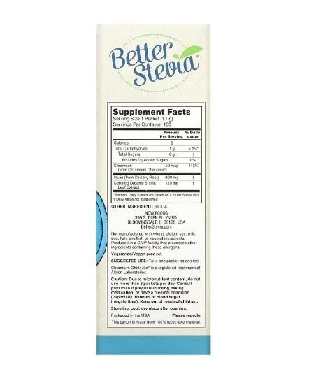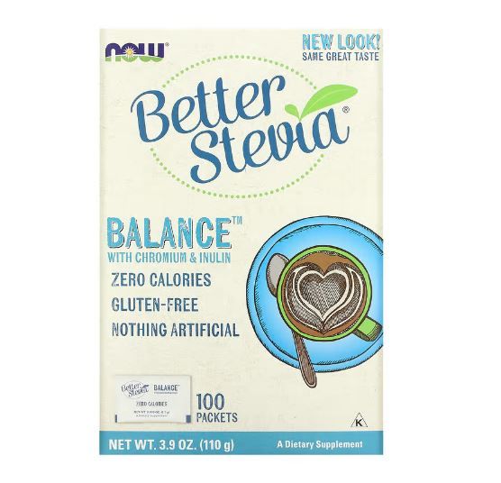Now Foods Better Stevia Balance mit Chrom & Inulin, 100 Beutel, je 1,1 g