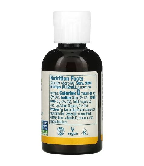 Pflanzliches Glycerin, zertifiziertes Bio-Steviablattextrakt, natürlicher Zitronenextrakt (auf Alkoholbasis), natürliches Zitronenöl. Enthält 12% Alkohol. Hergestellt ohne: Weizen, Gluten, Soja, Milch, Ei, Fisch und Schalentiere. Hergestellt in einer GMP-zertifizierten Anlage, in der andere Inhaltsstoffe verarbeitet werden, die diese Allergene enthalten. |
