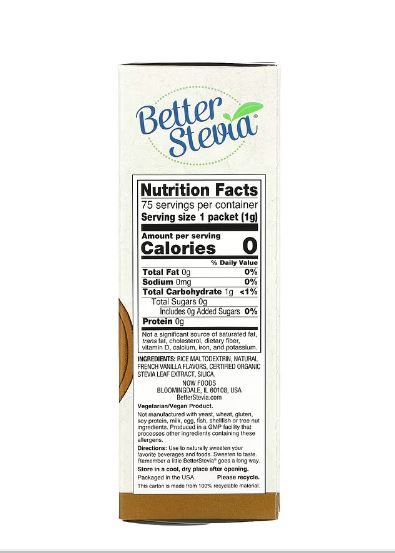 Now Foods Better Stevia, kalorienfreier flüssiger Süßstoff, 75 Päckchen, je 1 g