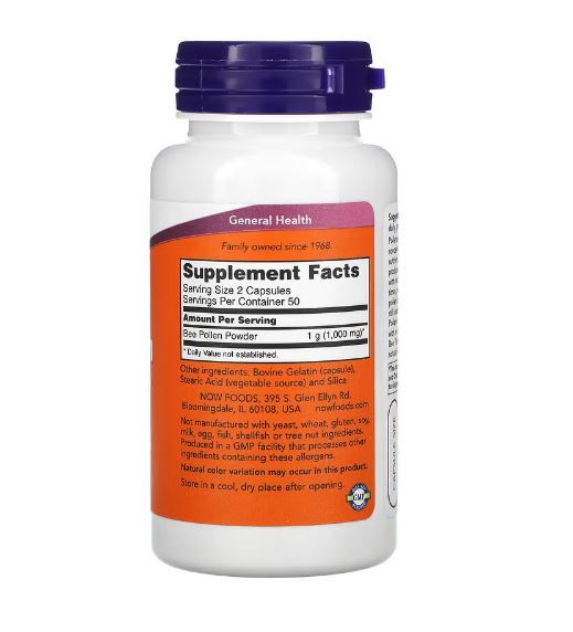Now Foods Bienenpollen-Kapseln, 500 mg, 100 Kapseln