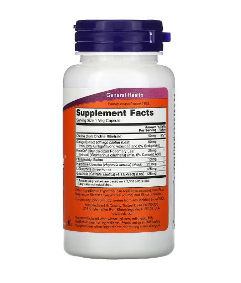 NOW® Brain Elevate™ wurde wissenschaftlich formuliert, um eine gesunde Gehirnfunktion zu unterstützen. Brain Elevate™ enthält Ginkgo Biloba und RoseOx®, zwei Pflanzenextrakte, die für ihre Eigenschaften, freie Radikale zu bekämpfen, bekannt sind. Dieses Produkt enthält zudem Phosphatidylserin, L-Glutamin und Cholin als wichtige Nährstoffe für das Gehirn, um optimale Ergebnisse zu erzielen |