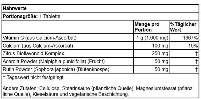 - Antioxidativer Schutz mit Gepuffertes C und 250 mg Bioflavonoiden
