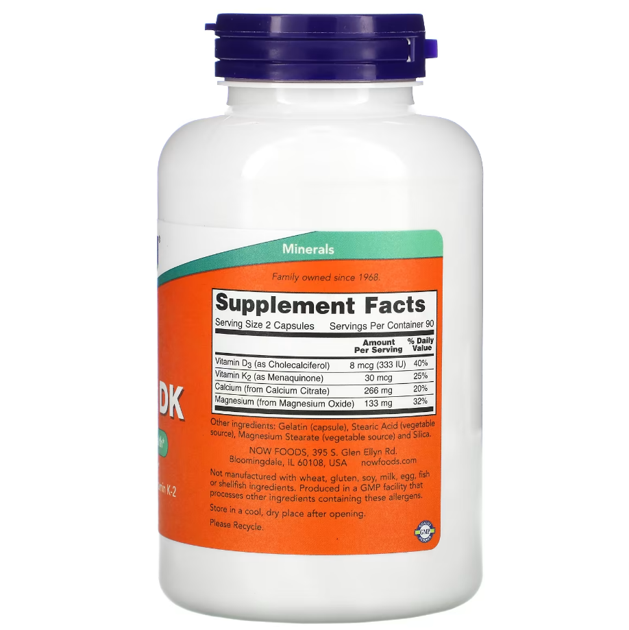 Calcium und Magnesium sind Mineralien, die bekanntermaßen für die Knochengesundheit unerlässlich sind. Zusammen mit diesen beiden wichtigen Mineralien liefern NOW® Cal-Mag DK Caps Vitamin D und K. Vitamin D3, ein fettlösliches Vitamin, spielt nachweislich eine entscheidende Rolle im Knochenstoffwechsel sowie bei der Aufnahme von Calcium und Magnesium im Darm. Vitamin K-2 ist ein Nährstoff, der die Knochengesundheit durch seine Beteiligung an einer gesunden Knochenverkalkung weiter unterstützt. |