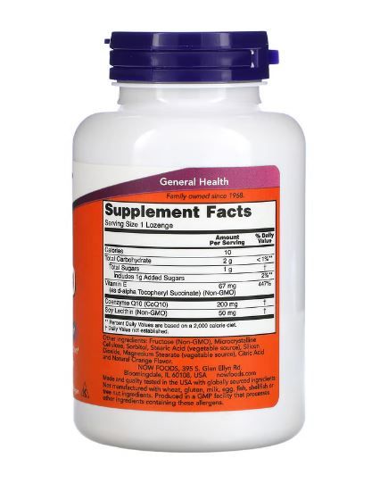 Fructose (GMO-frei), mikrokristalline Cellulose, Sorbit, Stearinsäure (pflanzliche Quelle), Siliciumdioxid, Magnesiumstearat (pflanzliche Quelle), Zitronensäure und natürlichem Orangengeschmack. Hergestellt ohne: Weizen, Gluten, Milch, Ei, Fisch, Schalentiere oder Nüsse. Hergestellt in einer GMP-zertifizierten Anlage, in der andere Inhaltsstoffe verarbeitet werden, die diese Allergene enthalten. NOW® CoQ10 ist ein Produkt pharmazeutischer Qualität. Die CoQ10-Produkte von NOW enthalten nur die natürliche All-Trans-Form von CoQ10,, die durch Fermentation hergestellt wird. |