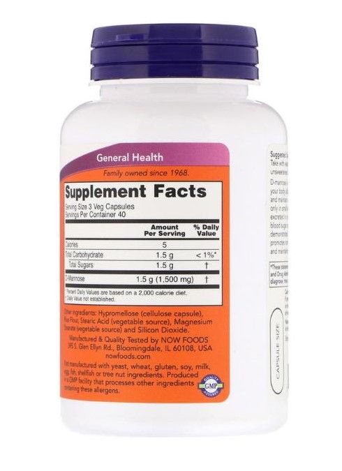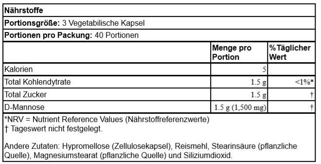 NOW FOODS D-MANNOSE 500 MG 120 VEGETARISCHE KAPSELN