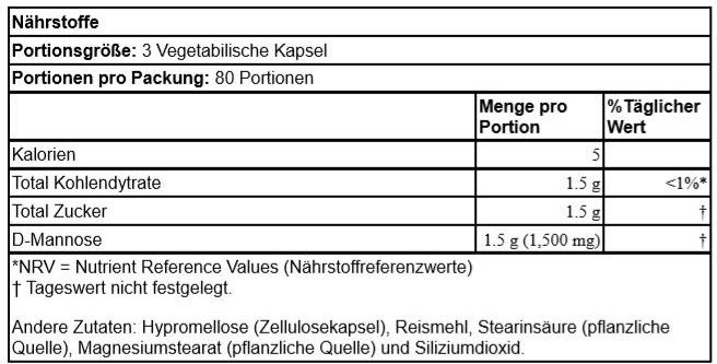 NOW FOODS D-MANNOSE 500 MG 240 VEGETARISCHE KAPSELN