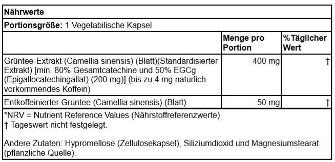 | Inhalt | Hypromellose (Zellulosekapsel), Siliziumdioxid und Magnesiumstearat (pflanzliche Quelle). |