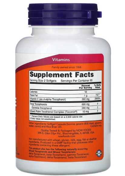 | Inhalt | Softgel-Kapsel [Rindergelatine (BSE-frei), Glycerin, Wasser, Johannisbrot] und Reiskleieöl. Enthält Soja. Nicht aus Weizen, Gluten, Milch, Ei, Fisch oder Schalentieren hergestellt. Hergestellt in einer GMP-Anlage, die andere Zutaten verarbeitet, die diese Allergene enthalten. Dieses Produkt enthält auch die folgenden natürlich vorkommenden gemischten Tocopherole und gemischten Tocotrienole: Delta-Tocopherole, Beta-Tocopherole, Gamma-Tocotrienol, Alpha-Tocotrienol, Delta-Tocotrienol, Beta-Tocotrienol . |